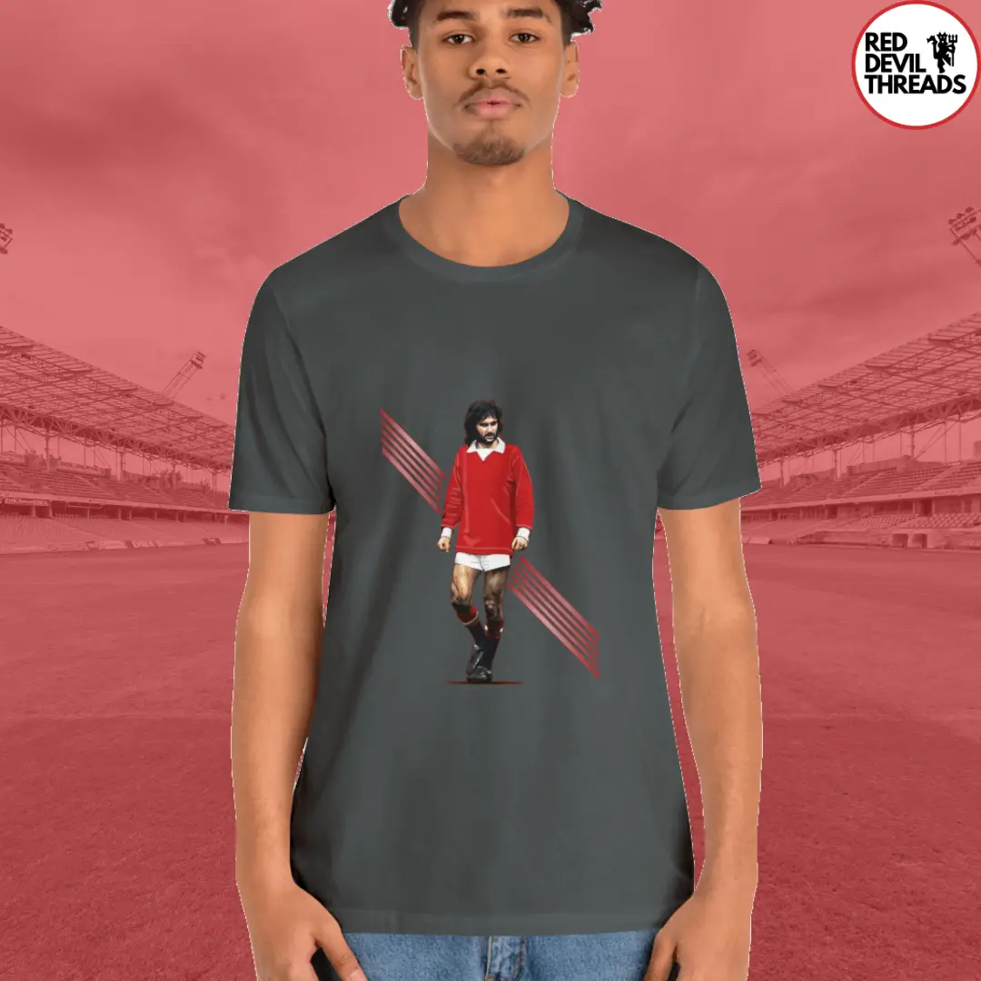 Celebrate the legacy of George Best and show your love for Manchester United with our exclusive T-shirt. Featuring a design inspired by the legendary footballer’s style and prowess on the field, this tee is a must-have for any fan. Made from high-quality materials, it’s not only a tribute to Best but also a comfortable addition to your fan gear collection. Get yours today and relive the magic of George Best’s era at Man Utd